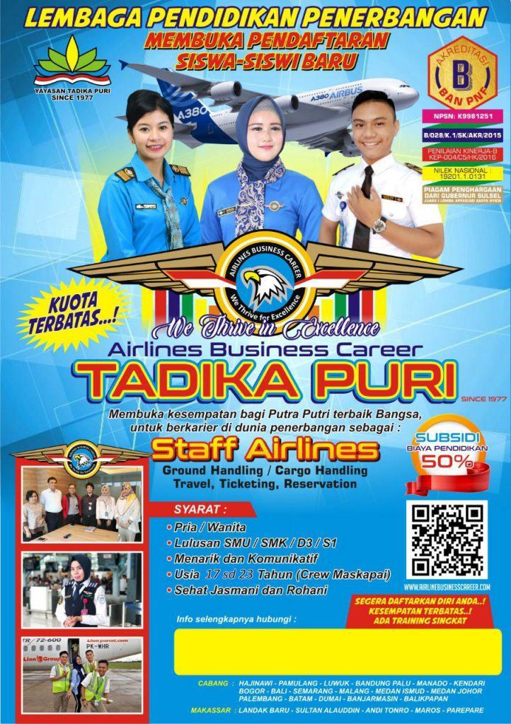 Lembaga Pendidikan Penerbangan Tadika Puri saat ini membuka pendidikan 6 bulan langsung Siap Kerja.